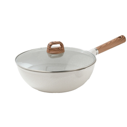 Leggero in ghisa wok e pentole saltate in padella con manico in legno per la cottura della cucina sul fornello a induzione a Gas