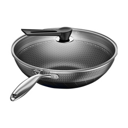 304/316 a nido d'ape in acciaio inossidabile addensato Wok padella antiaderente Non rivestita universale per fornelli a induzione e fornelli a Gas